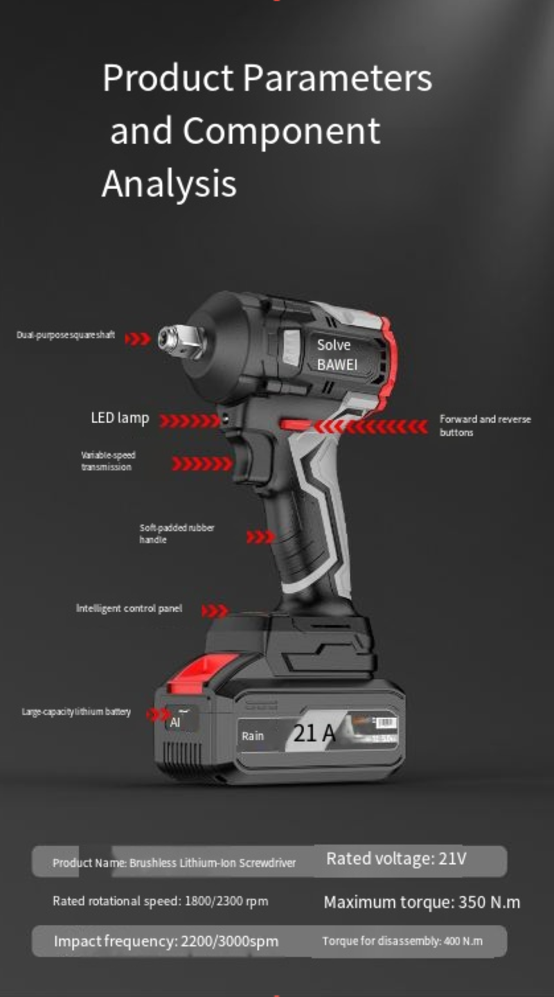 Sua "confiança em alta potência" vem da configuração poderosa da bateria de lítio 21V e do motor brushless: o motor brushless não só fornece potência total, mas também tem uma vida útil várias vezes maior que a dos motores escovelhas comuns – ao apertar os parafusos de fixação de alta resistência dos trilhos ferroviários, não é necessário gritar por ajuda ou pedir ajuda a alguém; basta pressionar o interruptor e ele pode segurar firmemente o torque, e os parafusos grossos podem "afrouxar e apertar instantaneamente"; Ao trocar pneus grandes em reparos automotivos, não há necessidade de se preocupar com uma chave manual; Em poucos segundos, é possível remover ou instalar facilmente um parafuso, evitando a fadiga e a dor que impediriam de levantar os braços.