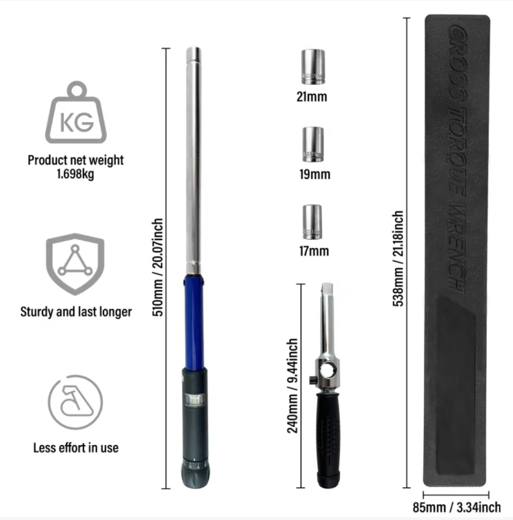 É verdadeiramente uma "tecnologia preta de eficiência": feita de aço liga de cromo-molibdênio, com máxima dureza e durabilidade. A alça cruzada + empunhadura ergonômica, sem a necessidade de pisar ou alavancar, pode ser firmemente segurada e exercer força com uma mão; o design em estilo janela permite visualização em tempo real do valor de torque, ajustável na faixa de 70-170 NM, com precisão de ±4% - dez vezes mais confiável do que "operar por sorte" baseado na sensação.