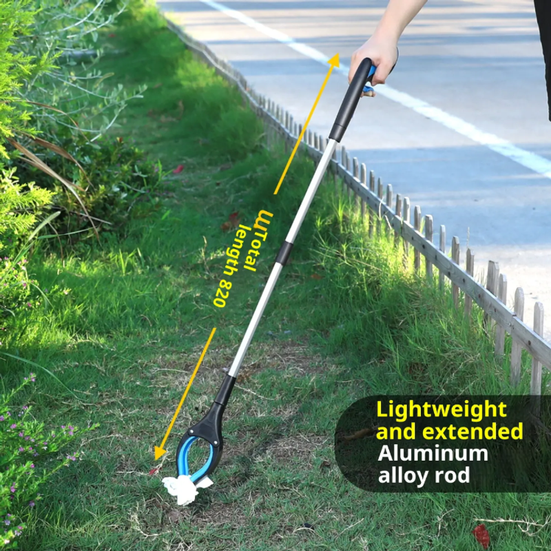 Seu cabo é feito de liga leve de alumínio, com comprimento total de 82 cm. Isso facilita recolher lixo do chão sem precisar se curvar, pegar controles remotos nas costuras do sofá sem precisar agachar e alcançar caixas de correio altas sem dificuldade. É amigável para pessoas com problemas nas costas, gestantes ou idosos, eliminando completamente o problema da "distensão nas costas".