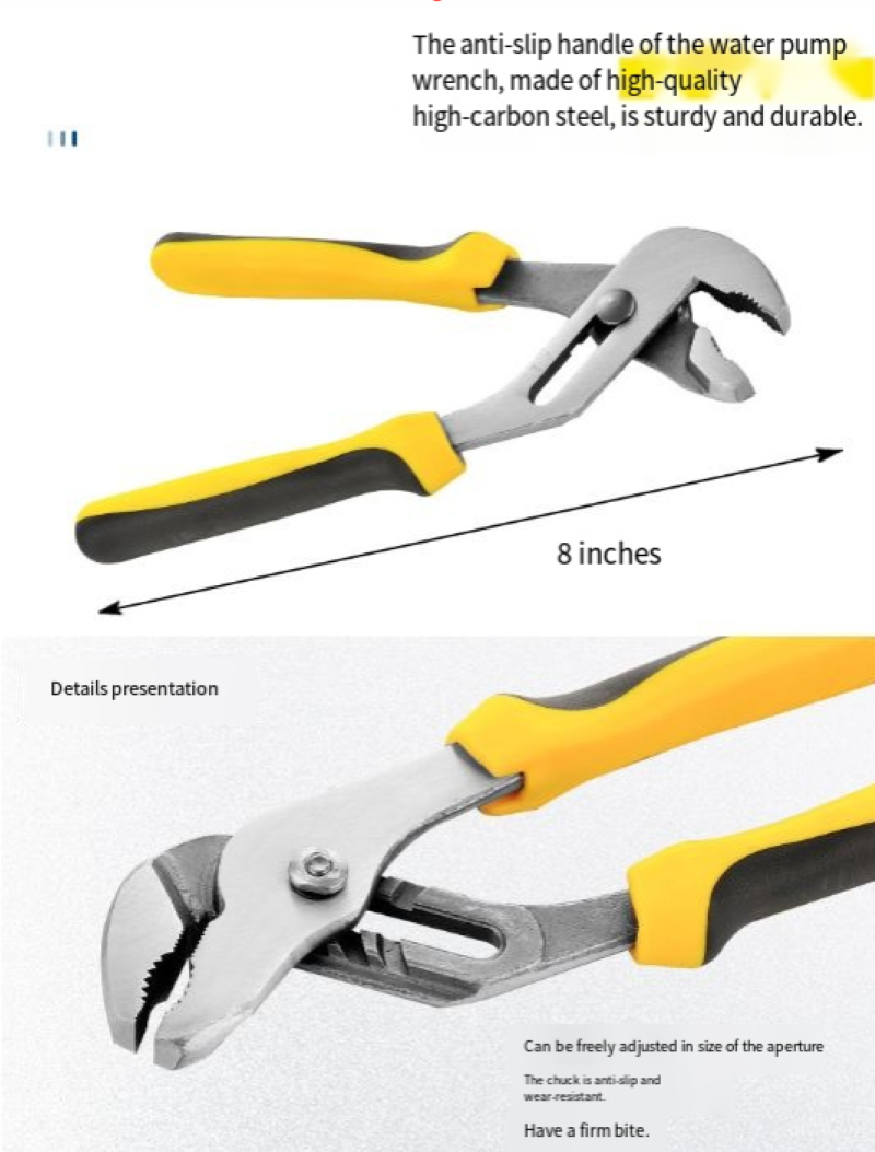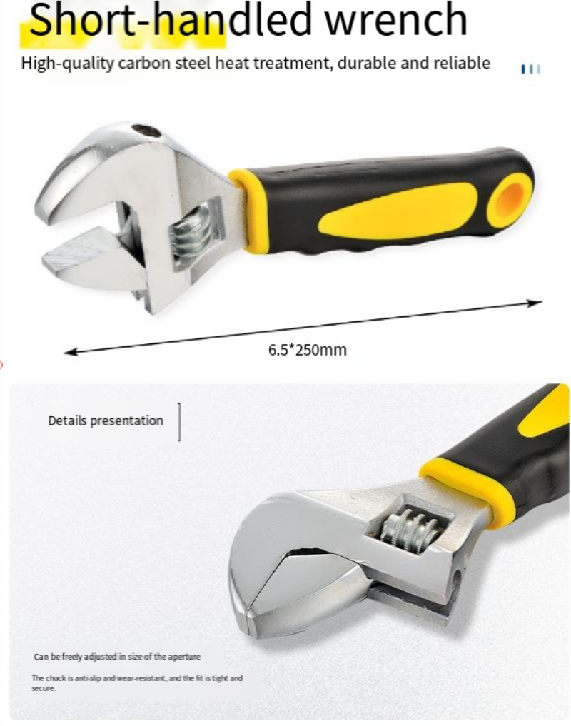 Categoria de ferramentas elétricas: Tesouras (design de cabo de 250 mm de comprimento, com uma estrutura de chifre de ovelha que pode facilmente cravar pregos), chaves ajustáveis (especificação de 6,5 * 250 mm, com abertura ajustável e mandíbulas antiderrapantes e resistentes ao desgaste) e assim por diante, atendendo às "demandas violentas" de instalação de material de construção e manutenção de tubos;