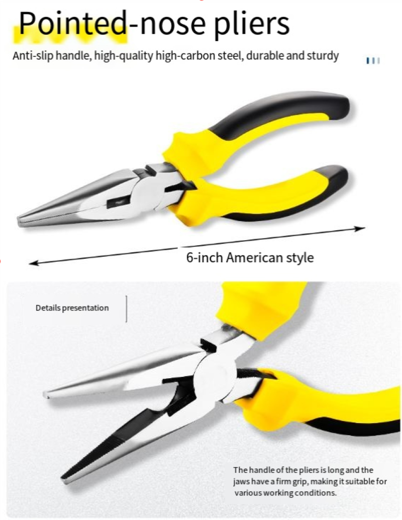 Categoria de ferramentas finas: De uma ou dez chaves de fenda (cobrindo vários tamanhos, como 4 polegadas, com cabeças endurecidas e partículas antiderrapantes nas alças), a alicates pontiagudos (estilo americano de 6 polegadas, com mandíbulas firmemente presas e alças antiderrapantes duráveis) e, em seguida, a fitas métricas e niveladores, atende às operações precisas necessárias para montagem de móveis e manutenção de circuitos;