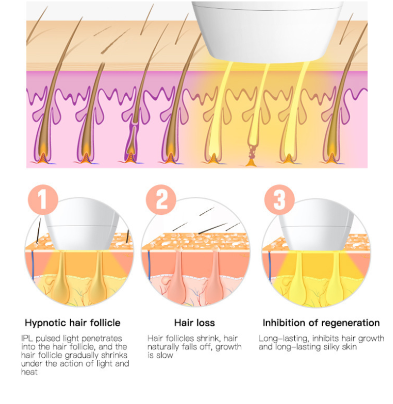 Sua principal vantagem é a **experiência dupla "precisa e eficiente + indolor e segura": ele adota a tecnologia IPL de luz pulsada forte de alto nível, que pode penetrar profundamente na raiz do folículo piloso e inibir suavemente o crescimento capilar. Combinado com 8 níveis de ajuste de energia, pode encontrar o nível adequado para peles sensíveis e peles tolerantes. Ele pode ser alternado livremente entre 2 modos – o modo de pisca manual cuida precisamente dos detalhes como a área dos lábios e axilas, e o modo de piscar contínuo com pressão longa pode cobrir eficientemente grandes áreas dos membros. A eficiência da depilação é dobrada.