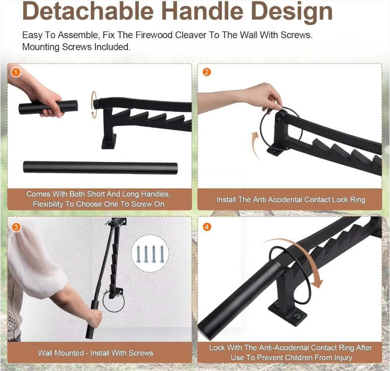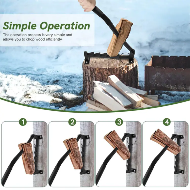 O núcleo desse dispositivo é seu design eficiente e sem esforço: estrutura de alavanca + alavanca ajustável. Você não precisa exercer força com um martelo; Basta pressionar o cabo suavemente e você pode facilmente dividir a lenha em lenha uniforme – é 80% mais eficiente que martelos tradicionais, e você pode preparar uma pilha de lenha em apenas alguns minutos. Chega de lutar para acender uma fogueira ou manter a lareira aquecida.