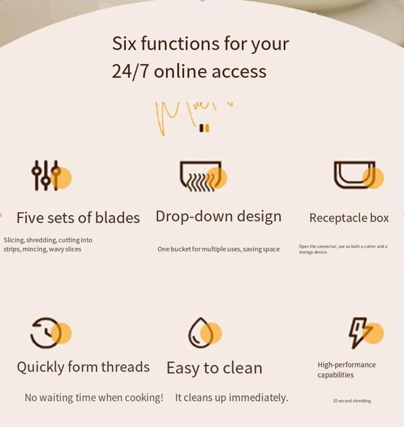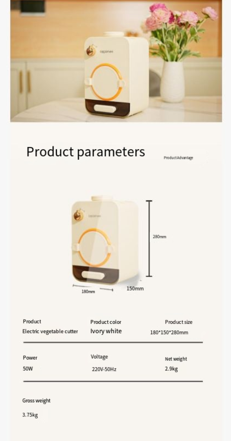 Você ainda está preocupado com o complicado processo de cortar legumes e preparar refeições? Este cortador de legumes elétrico de alto apelo é realmente uma "maravilha de fatiar e cortar" na cozinha. Com seu design inovador e desempenho eficiente, ele redefine sua experiência culinária, transformando a preparação de refeições de uma tarefa demorada em uma atividade agradável e sem esforço.