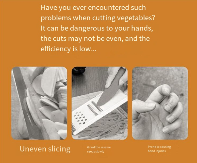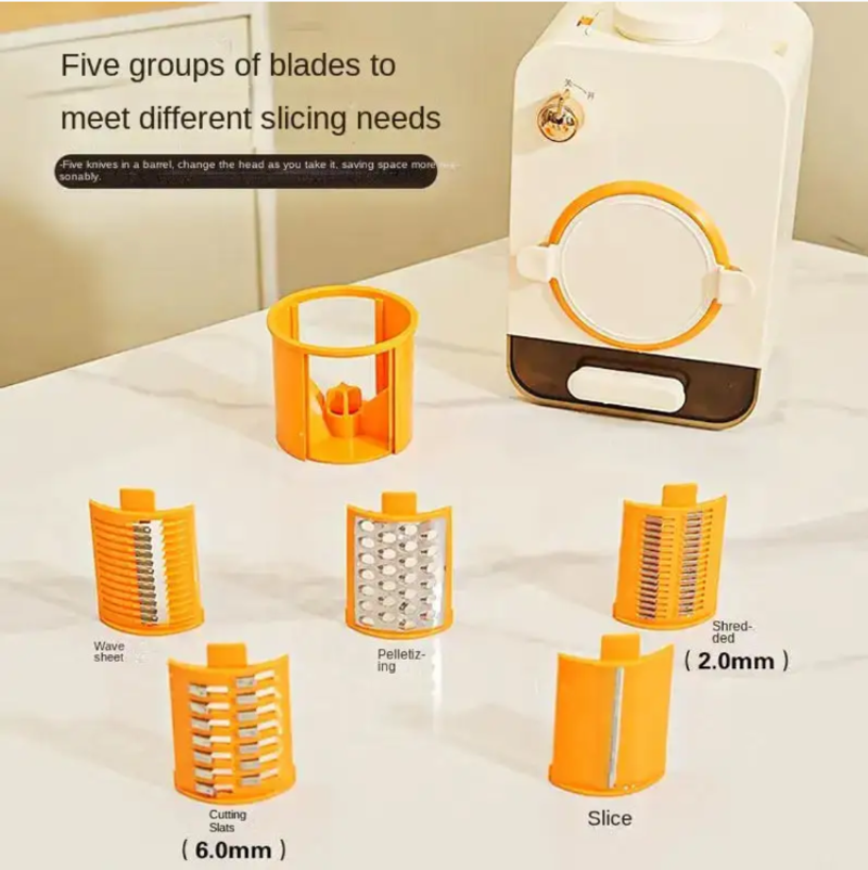 Seu efeito de fatiar e cortar em cubos é de nível profissional. Quer se trate de rabanete crocante, batatas fofas ou pepinos macios, basta colocá-los na máquina e empurrar suavemente, e imediatamente obter fatias ou pedaços uniformes e delicados. Os ingredientes cortados são "claramente definidos sem quebrar", tornando-os adequados para fazer pratos frios, refogados ou sopas. Com 5 lâminas funcionais diferentes que podem ser trocadas à vontade, para fatiar, cortar ou cortar flores... Este pode atender a várias necessidades e, assim, dizer adeus ao ocupado "esgrima e faca" na tábua de cortar, dando a você mais tempo para se concentrar na culinária criativa.