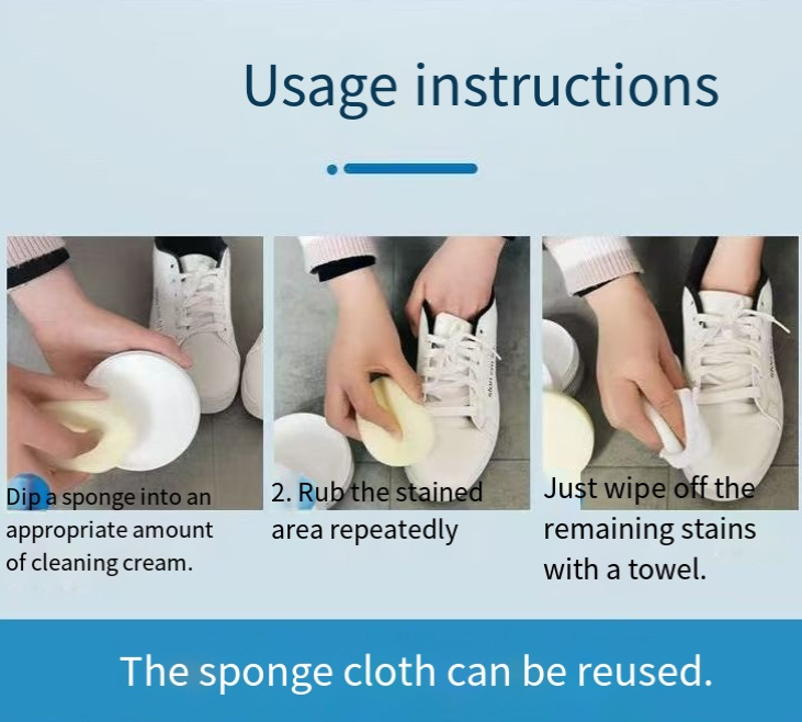 Basta usar uma esponja para mergulhar na quantidade certa da pasta e limpar suavemente. As manchas desaparecem instantaneamente, sem necessidade de lavagem com água. É tanto economizador de tempo quanto de mão de obra. Seja pela poeira do uso diário ou pelas manchas persistentes, ele pode lidar facilmente com elas, fazendo com que os sapatos pareçam novos.
