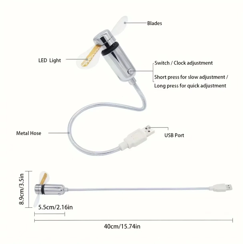Você se irrita com o calor quando trabalha ou estuda no verão? Este mini ventilador USB colorido não só sopra ar, mas também integra um "relógio + termômetro" nas pás do ventilador. É prático e atraente para quem se importa com a aparência!