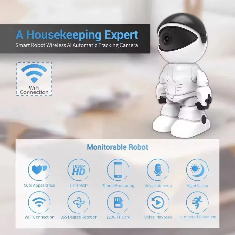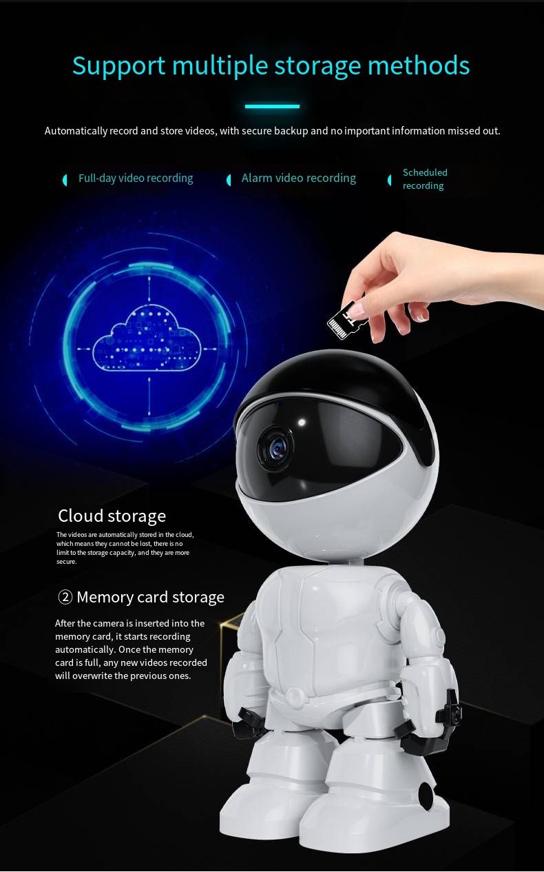 Esta câmera de vigilância robô inteligente é o "guardião fofo" para a segurança doméstica. Escondido em forma de robô, pode ser integrado ao ambiente como um item decorativo e é improvável que seja notado por sua função de vigilância. Possui qualidade de alta definição 1080P, suporta conexão Wi-Fi e pode ser visualizado remotamente por meio de um dispositivo móvel. A câmera pode girar 355° horizontalmente e 60° verticalmente, alcançando vigilância em sala inteira e sem canto. Ele também possui detecção humana de IA, funções de visão noturna e comunicação de voz bidirecional. É equipado com um cartão TF máximo de 128G para armazenamento e reprodução de vídeo. Seja para cuidar de bebês, ficar de olho em animais de estimação ou proteger a segurança da família, ele pode registrar com precisão cada momento, permitindo que você acompanhe a situação da casa a qualquer momento e se sinta à vontade e conveniente.