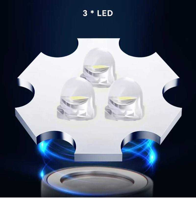 Em segundo lugar, possui uma configuração de fixação magnética dupla: o anel externo da lanterna da cabeça é magnético, e uma cabeça magnética separada é posicionada na cauda. Isso não só segura firmemente parafusos, porcas e outras peças metálicas para evitar que caiam novamente, mas também pode fixar toda a ferramenta no chassi do carro, prateleiras de metal, etc., liberando completamente as mãos e tornando a operação e a iluminação mais eficiente.