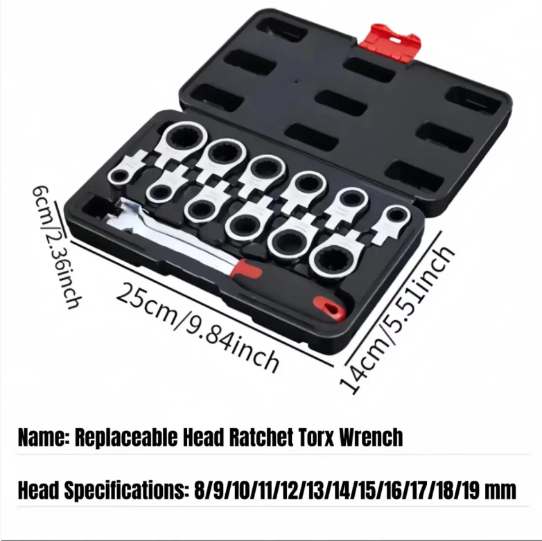 Troques frequentes de chave ao apertar parafusos? Dificuldade para virar em espaços estreitos? Este conjunto de chaves hexagonais com catraca de cabeça substituível, com cabeças de múltiplos tamanhos + catraca de precisão de 5°, dobra a eficiência do aperto de parafusos. Pode ser usado em conserto de automóveis, encanamento e decoração ao mesmo tempo.