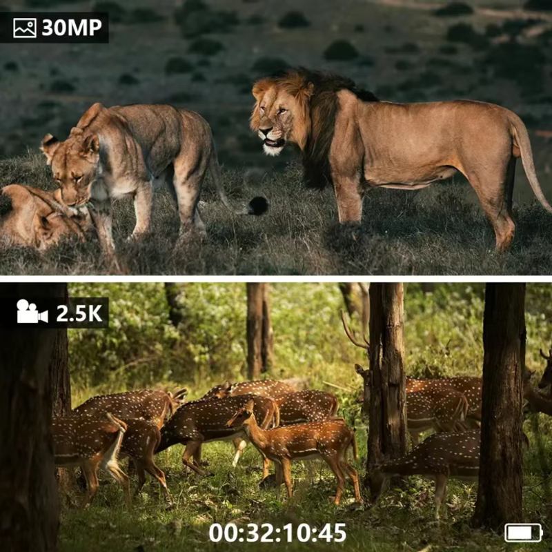 A tela de alta definição de 3 polegadas está equipada, permitindo que você visualize diretamente a imagem de observação sem a necessidade de um dispositivo externo. Os detalhes são claramente visíveis. A função de zoom digital de 6x permite que você amplie livremente alvos distantes, até mesmo os movimentos sutis de animais distantes podem ser capturados. Além disso, também possui uma função de gravação de fotos e vídeos. Os 3 milhões de pixels podem gravar imagens de alta definição e a gravação de vídeo 2.5K pode preservar cenas dinâmicas. Ele suporta um cartão de memória máximo de 128 GB, permitindo que você armazene os resultados de sua observação o quanto quiser.