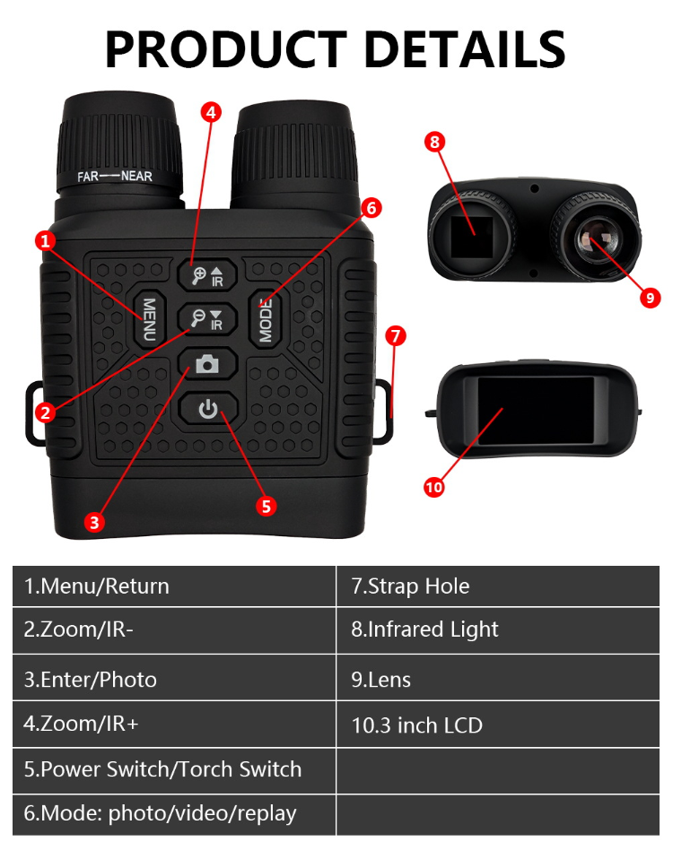 Você ainda está se sentindo frustrado porque não consegue ver claramente ao observar animais à noite ou durante aventuras ao ar livre? Este dispositivo de visão noturna de alta definição, com seus poderosos recursos de visão noturna e configuração multifuncional, torna-se um excelente companheiro para entusiastas do ar livre e observadores da natureza, permitindo que você capture claramente todos os momentos maravilhosos no escuro.