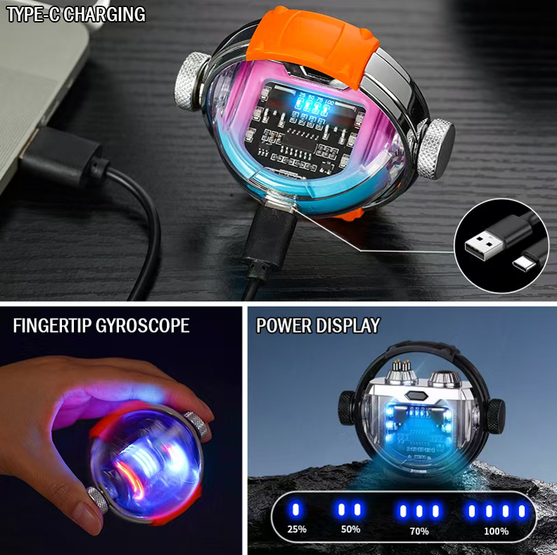 Quando você vê esse isqueiro pela primeira vez, com certeza será atraído pelo design futurista de seus mechos. O corpo arredondado, combinado com o clássico choque de laranja e prata, parece um adereço de um filme de ficção científica, deixando uma impressão duradoura. E quando você o gira suavemente, o giroscópio embutido começa a girar rapidamente, acompanhado pelo piscar deslumbrante das luzes de LED, como se você estivesse imerso na vasta extensão das estrelas e do mar. A combinação de sofisticação tecnológica e diversão é realmente notável.