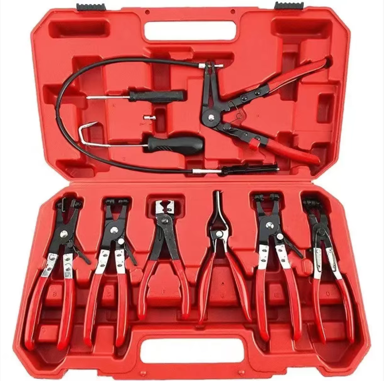 Ao manter ou consertar veículos, o problema mais problemático é a dificuldade de remover os grampos dos canos e a impossibilidade de alcançar as mangueiras flexíveis. Este kit de 9 ferramentas para veículos é realmente um "deus da eficiência" para mecânicos automotivos, fornecendo todos os alicates necessários para a manutenção de canos de carros e motocicletas em um único pacote!