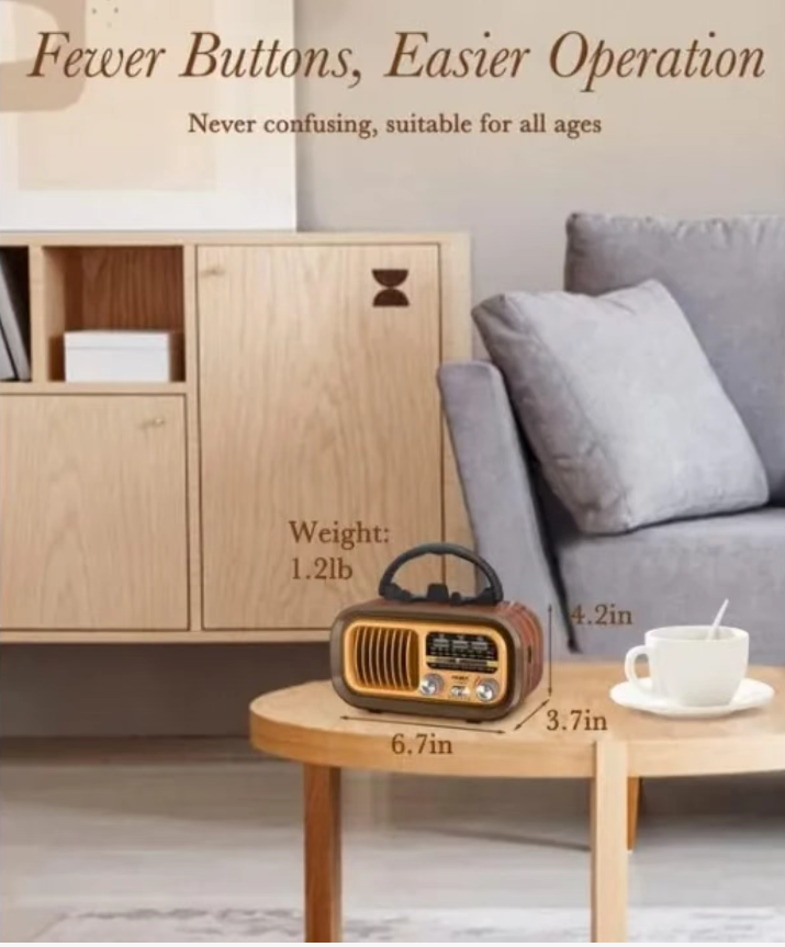 Cada detalhe presta homenagem à era de ouro dos rádios: a textura de madeira do corpo combinada com botões de metal, a tampa da grade retrô, como se tivesse saído de um filme antigo. Seja colocado no canto retrô da sala de estar ou usado como um item decorativo no escritório, ele pode melhorar instantaneamente a qualidade espacial com "estética retrô", tornando-se um foco duplo de visão e audição.