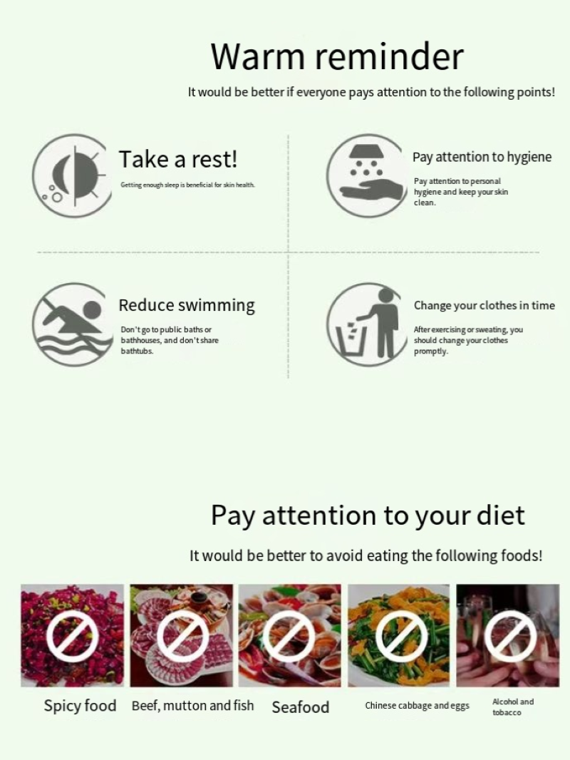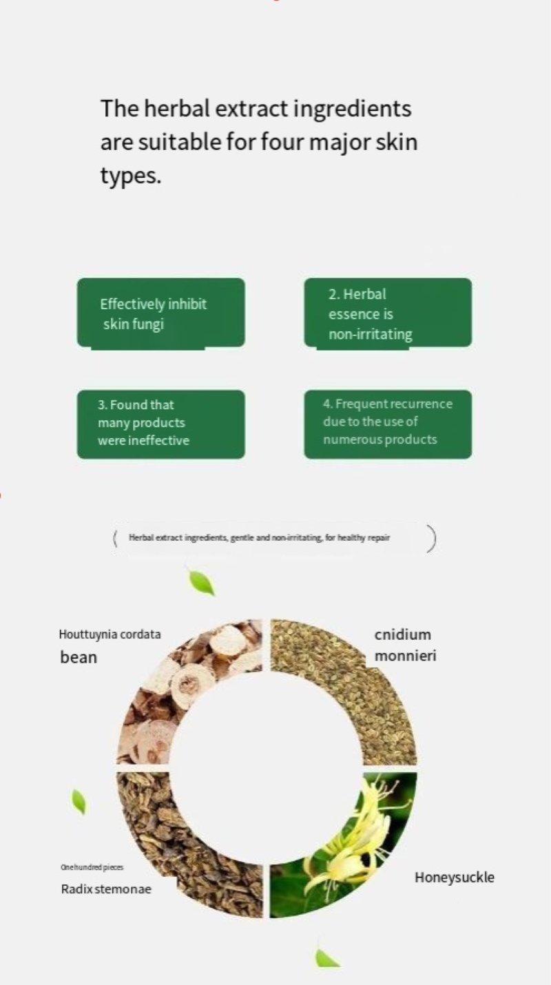 Ele depende de ervas genuínas para fornecer sua força: ingredientes como raiz de kudzu e bupleurum formam uma fórmula antibacteriana suave, sem aditivos químicos irritantes. O creme tem uma textura suave e não oleosa, com um leve aroma herbal quando aplicado, e é absorvido imediatamente ao se espalhar. Isso não vai deixar o tecido pegajoso ou grudado, e até mesmo quem tem pele sensível pode usá-lo com tranquilidade. Não precisa se preocupar com vermelhidão ou ressecamento pós-aplicação.