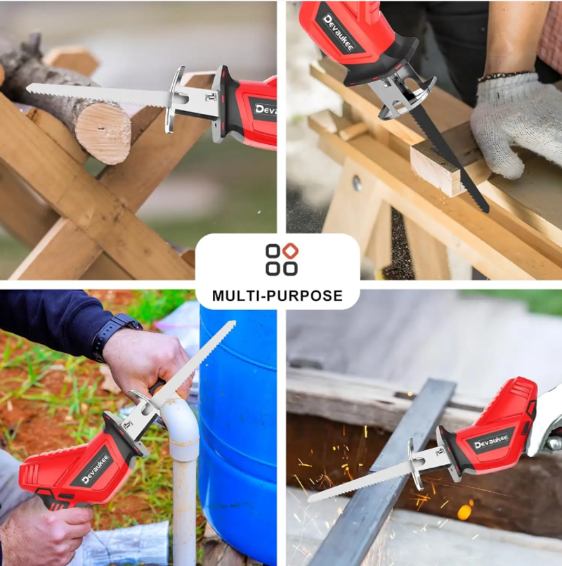 Seu sistema de energia de bateria de lítio é a base para um corte eficiente: equipado com uma bateria de lítio de grande capacidade, pode realizar um grande número de tarefas de corte com uma única carga, eliminando completamente a limitação dos cabos de alimentação; Seja cortando toras nas profundezas do pátio ou manuseando canos de metal em um canto da garagem, o trabalho pode começar a qualquer momento, a "liberdade sem fio" deixa a cena de corte mais restrita e, com as 4 lâminas de funções diferentes, madeira, metal, tubos de PVC, etc., podem ser "resolvidos com uma única serra".