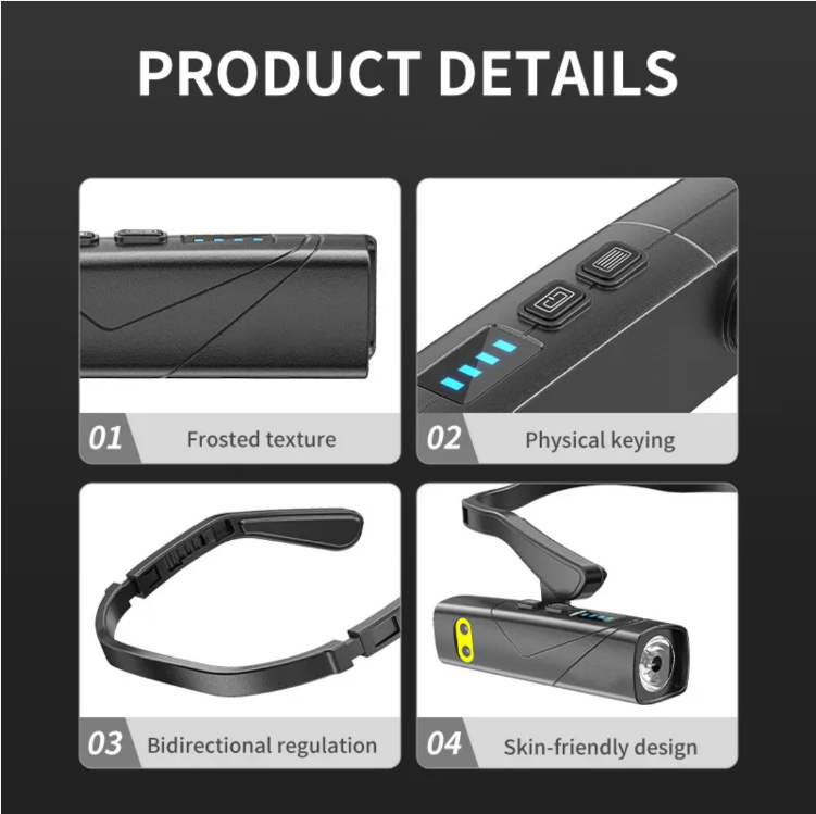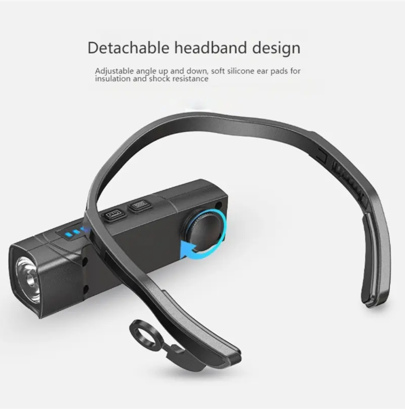Não será mais sobrecarregado pelo farol incômodo, não precisa liberar as mãos para tocar no interruptor – este farol com sensor montado no ouvido é leve como uma pluma, brilhante o suficiente, pode ser usado com um aceno de mão, aguenta cenários de uso durante toda a noite, fácil e prático.