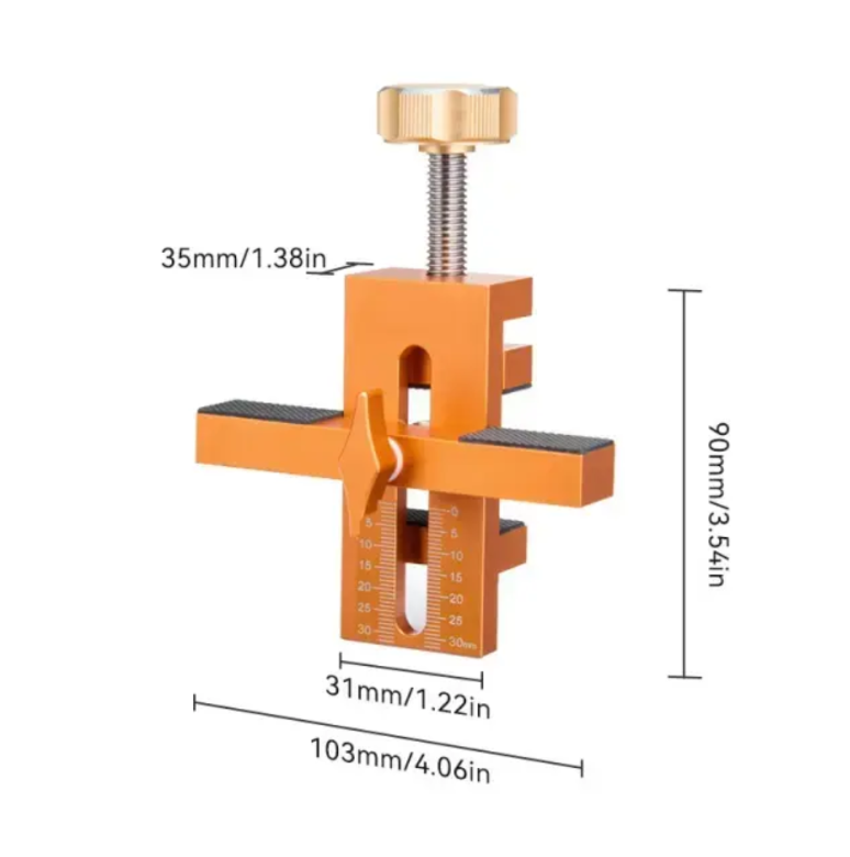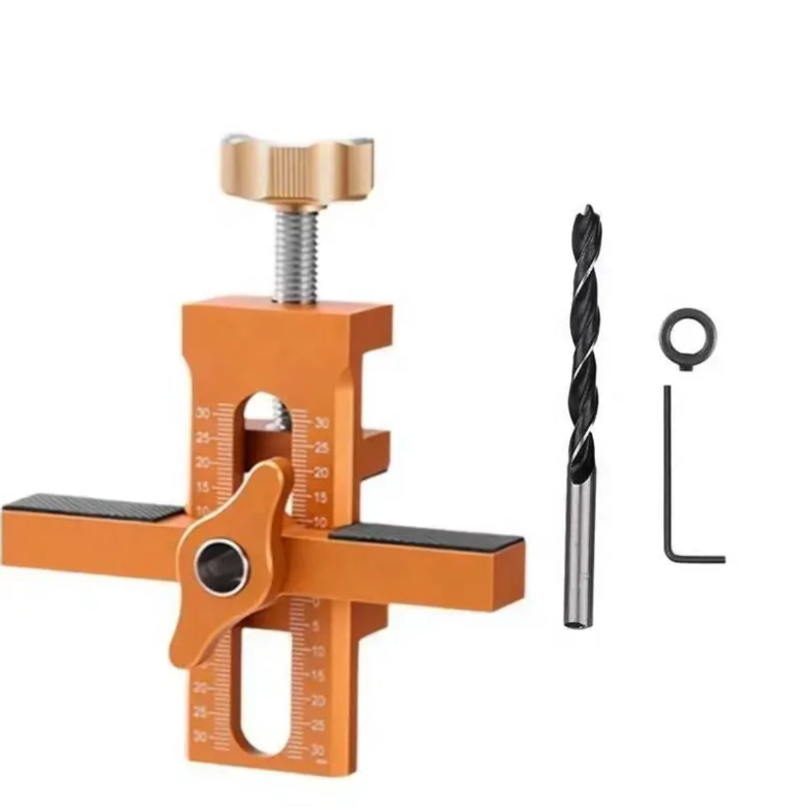 É feito de liga de alumínio resistente à ferrugem e durável, leve e durável. A superfície é marcada com réguas de escala, permitindo um posicionamento preciso em relação ao milímetro. A estrutura transversal pode ser ajustada para cima, para baixo, para a esquerda e para a direita. Seja furando tábuas de madeira, montando corpos de armários ou instalando dobradiças de portas de armários, ele pode fixar firmemente a peça, evitando que ela se mova ou desvie durante a operação.