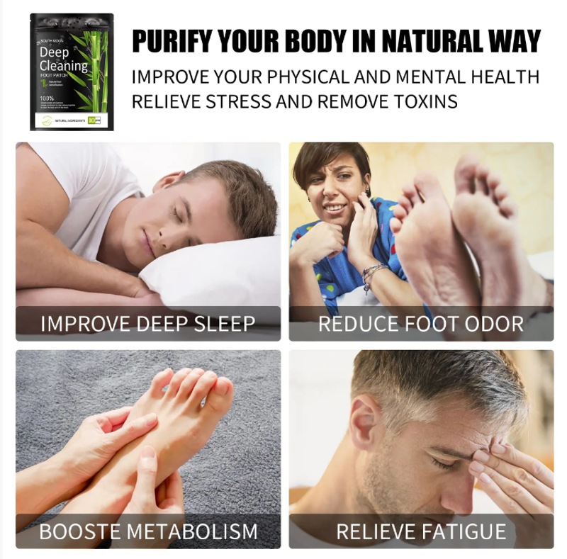 Ele seleciona extratos naturais de bambu e outros ingredientes à base de plantas e, através da penetração nos pontos de acupuntura do fundo do pé, ajuda seu corpo a eliminar a umidade e as toxinas acumuladas durante o dia. Depois de um dia agitado, aplique um adesivo antes de dormir, como se tivesse contratado um "gerente de desintoxicação" para os pés. Durante as 8 horas do seu sono tranquilo, ele regulará silenciosamente a microcirculação do seu corpo. Ao acordar de manhã, você sentirá claramente que seu corpo ficou muito mais relaxado e a qualidade do sono também melhorará. Essas noites agitadas serão coisa do passado.