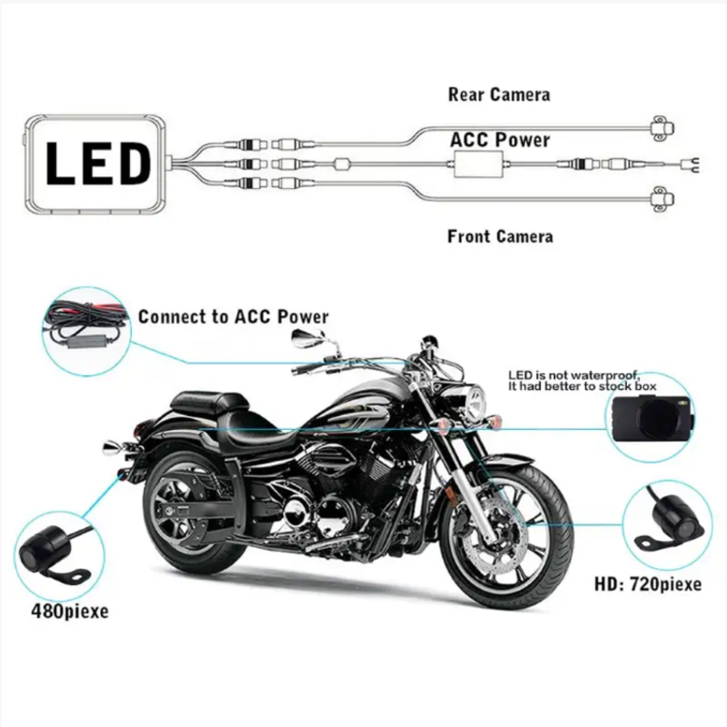 Ele está equipado com um sistema de câmera dupla dianteira + traseira: a câmera frontal captura as condições à frente do veículo, a traseira cobre o ponto cego na traseira do veículo, e a tela de 3 polegadas pode exibir as cenas frontal e traseira lado a lado – ao esperar no sinal vermelho, é possível ver os veículos que se aproximam pela traseira, E ao subir morros ou fazer curvas, você pode prever a posição do veículo atrás de você, então não precisa ficar olhando para trás com frequência, e sua pilotagem será mais focada.