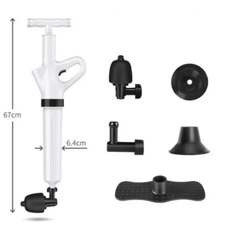 Adota um projeto pneumático de alta pressão integrado. Aplicando simplesmente pressão manual, pode gerar uma força de ar poderosa. Assim como uma "onda de choque de tubo", pode limpar instantaneamente cabelos, detritos e entupimentos obstinados de vasos sanitários, pias e ralos de chão. Seja um objeto duro entupindo o vaso sanitário ou manchas de óleo pegajosas nas profundezas dos tubos, esse fluxo de ar de alta pressão pode "perfurar" tudo de uma vez. A eficiência na limpeza de entupimentos é "rápida, precisa e forte". Diga adeus aos problemas intermináveis de limpeza repetida.