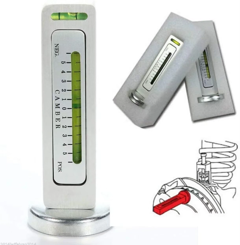 A característica central é "atração magnética + medição precisa do ângulo": o ímã forte na parte inferior adere firmemente ao cubo e à suspensão sem deslizar; A escala de nível embutida pode ler o ângulo com precisão, permitindo visualizar a inclinação das rodas e o desvio do ângulo de direção, eliminando a necessidade de confiar na experiência para ajustes de teste. Os dados são precisos ao milímetro.