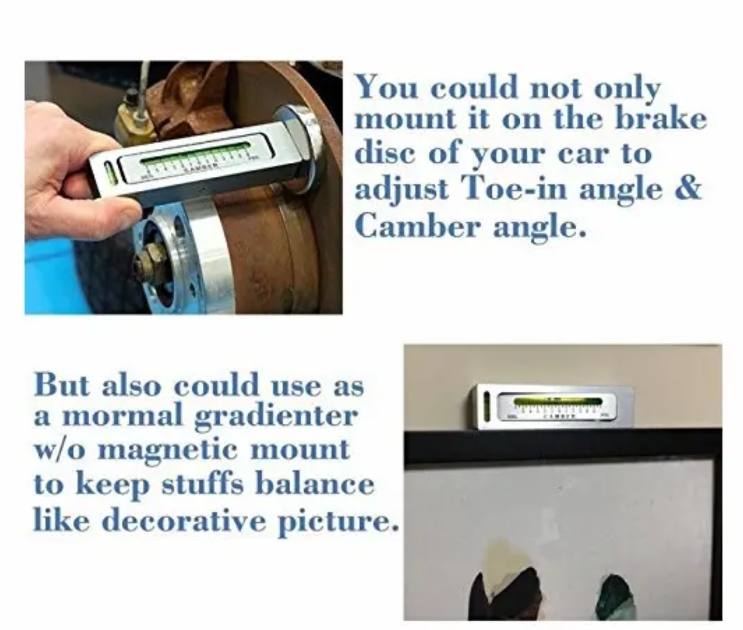 Pare de deixar que desviar do trajeto e o desgaste dos pneus custem dinheiro e causem problemas! Agora, traga esse medidor magnético de nível para casa, meça os ângulos com precisão, ajuste facilmente a posição e faça seu carro dirigir de forma constante e seus pneus durando mais. Os custos de manutenção do seu carro serão reduzidos diretamente!
