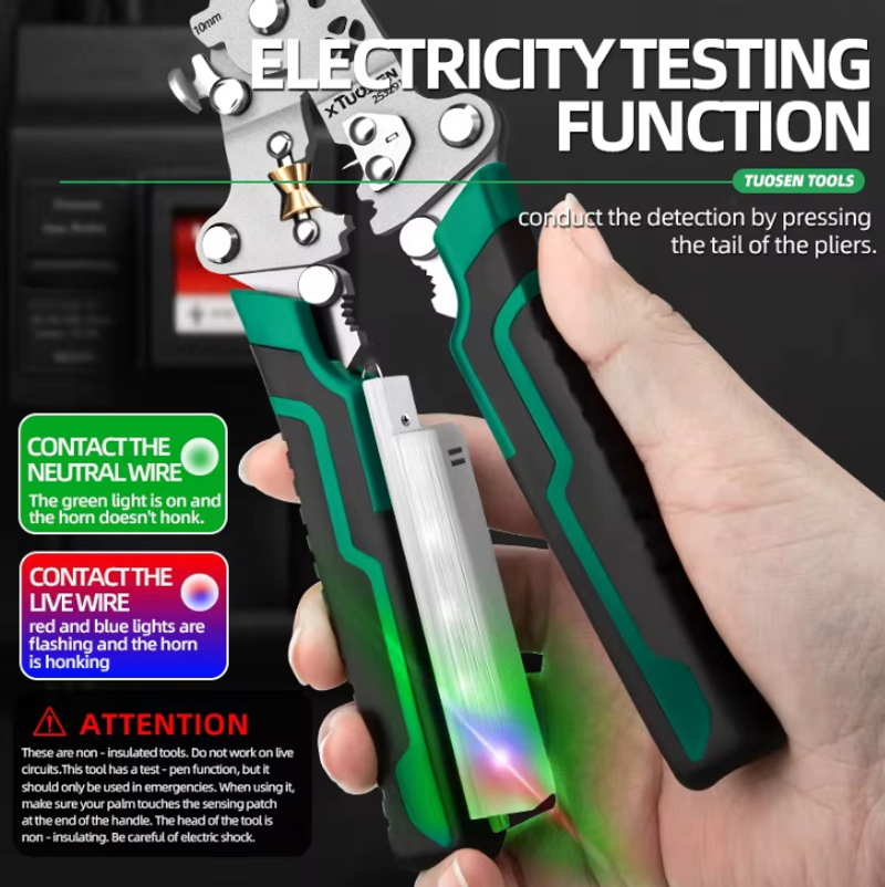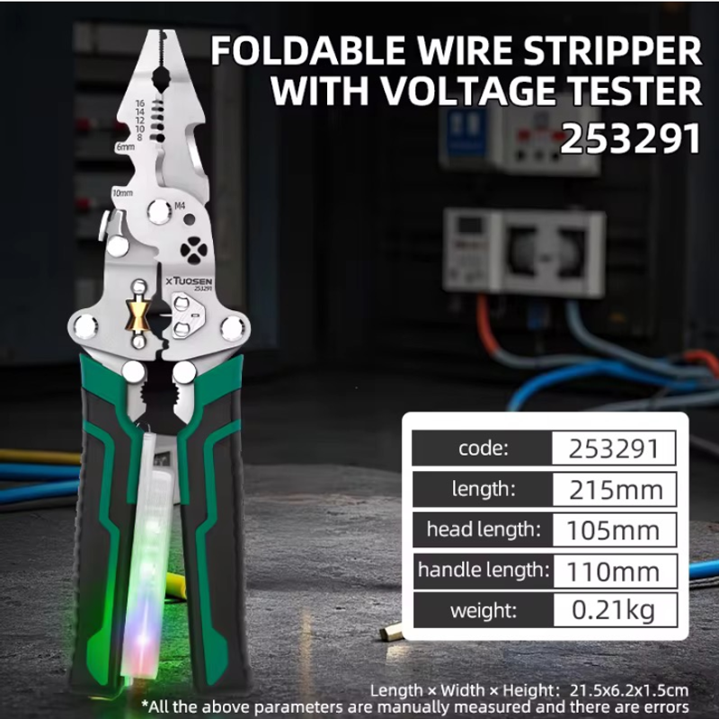 Este decapador de caneta elétrica dobrável combina as vantagens de armazenamento dobrável, detecção de caneta elétrica, decapagem eficiente de fios, enrolamento preciso, quebra de cabo limpa e adaptação de parâmetros. É uma "multi-ferramenta" versátil no campo das ferramentas elétricas. Com seu design de armazenamento dobrável, resolve os problemas de transporte e armazenamento de ferramentas. A função de detecção de caneta elétrica cria uma barreira de segurança para as operações dos trabalhadores elétricos. Sua capacidade eficiente de decapagem de fios melhora significativamente a eficiência do manuseio de cabos. O design preciso do enrolamento torna a conexão das linhas mais regular e bonita. O design da faca de quebra de cabo permite que você supere facilmente os problemas de processamento da pele externa do cabo. Os parâmetros adaptáveis atendem aos requisitos de operação do cabo em diferentes cenários.