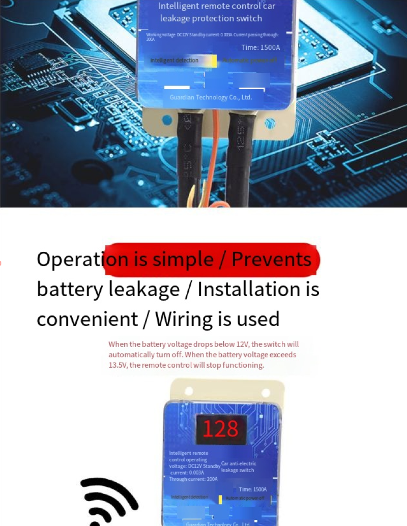 Sua característica mais crucial é a proteção de desligamento automático em baixa tensão: quando a tensão da bateria cai abaixo de 12V, o interruptor corta automaticamente a fonte de alimentação, desconectando efetivamente todos os dispositivos elétricos a bordo e eliminando completamente o "consumo de energia oculto e vazamento". Juntamente com uma corrente de espera ultrabaixa de 0,003A, o dispositivo quase não consome eletricidade. Mesmo que o veículo fique estacionado por vários meses, a bateria pode manter uma voltagem saudável e não há mais medo da situação embaraçosa de "descobrir que o carro está sem energia ao sair".