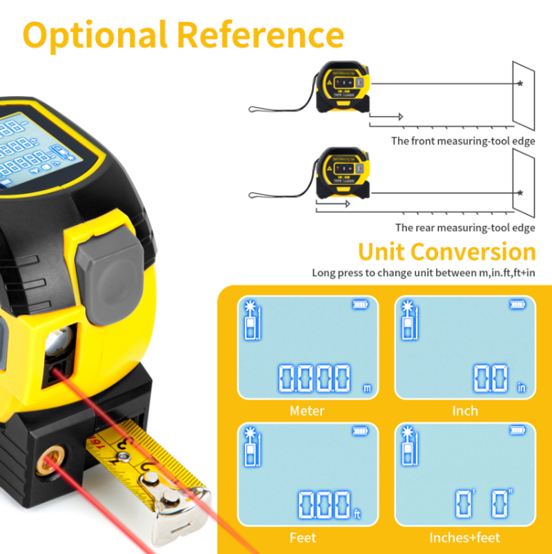 Ainda preocupado com as medições? Esta fita métrica a laser multifuncional 3 em 1 é definitivamente o seu ajudante para medições!