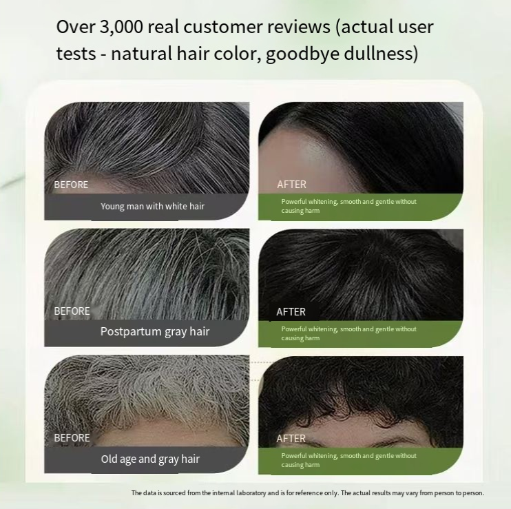 Para amigos que sofrem de cabelo branco, essa tinta é uma verdadeira bênção. Ele tem uma poderosa habilidade de ocultar o cinza. Seja uma pequena quantidade de cabelos brancos causados pelo estresse em jovens, cabelos grisalhos aparecendo após o parto nas mães, ou cabelos prateados cobrindo toda a cabeça dos idosos, eles podem facilmente cobri-los, permitindo que o cabelo recupere sua cor natural e vibrante. Além disso, a cor que produz é natural e realista, como se fosse a cor original do cabelo, sem qualquer constrangimento. Mais de 3.000 avaliações reais de clientes mostram que, após o uso, o cabelo apresenta uma cor natural, dizendo adeus à opacidade e recuperando um brilho saudável.