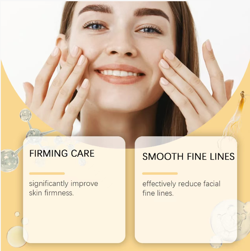 Ginseng selecionado de alta qualidade é cuidadosamente extraído para manter seus ingredientes ativos principais. Ela penetra profundamente nas camadas da pele, infundindo as células com energia abundante. As ricas saponinas, polissacarídeos e outros nutrientes presentes no ginseng são como a "estação de reposição de energia" da pele, despertando células dormentes e promovendo a regeneração do colágeno. Isso resolve a causa raiz da flacidez e queda da pele, rejuvenescendo e revitalizando a pele desde o início.