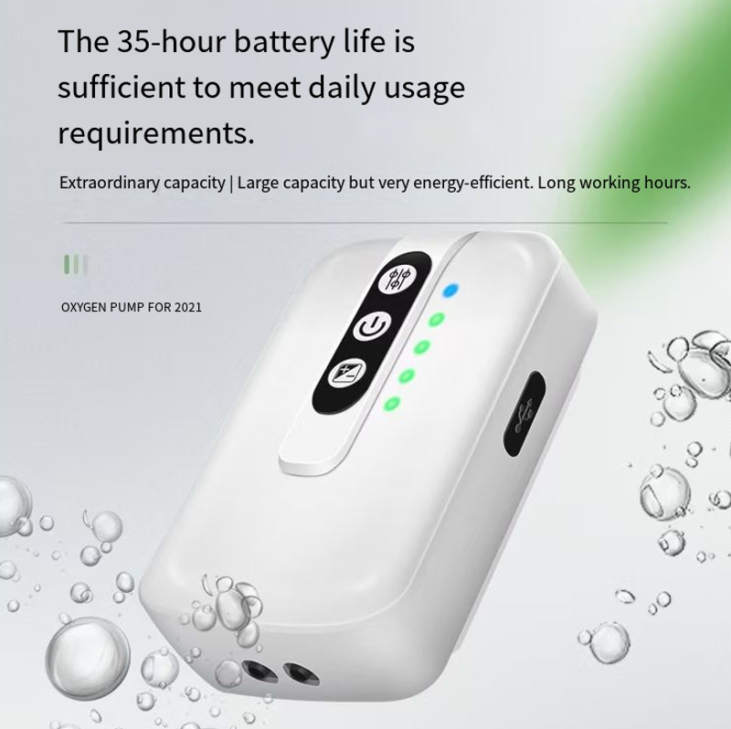 Você pode estar preocupado se a pequena bomba de oxigênio tem potência suficiente. Não se preocupe nem um pouco! Essa bomba de oxigênio utiliza uma bateria de lítio de grande capacidade, com uma duração de bateria impressionante. Uma vez totalmente carregado, ele pode funcionar continuamente por várias dezenas de horas e, para uso intermitente, pode durar mais de 35 horas, o que é suficiente para atender às suas necessidades de pesca durante todo o dia. Além disso, suporta carregamento por USB. Seja um carregador de carro, um power bank portátil ou uma porta USB de computador, você pode carregá-lo facilmente, tornando-o conveniente e rápido.