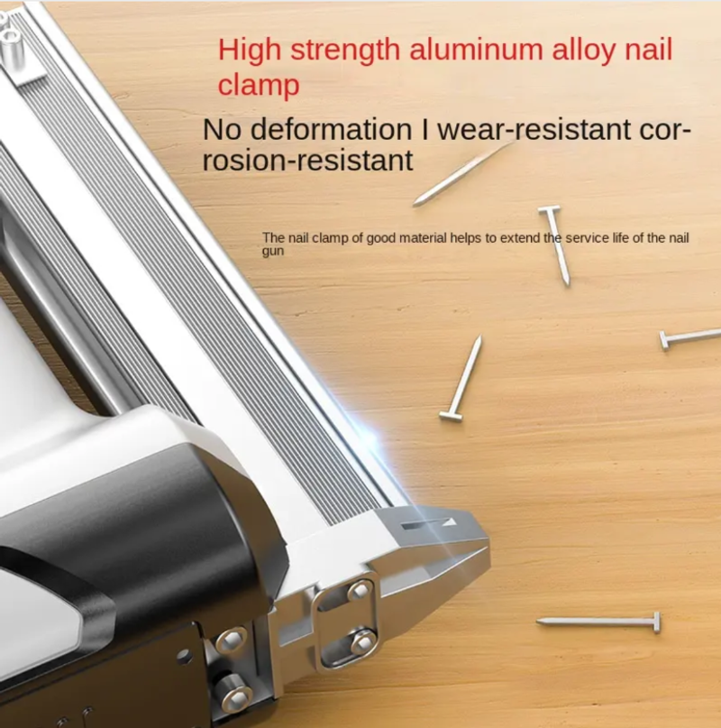 É também um "player acessível" em operação, com design de alça ergonômica, confortável de segurar sem escorregar e não propenso a fadiga durante a operação de longo prazo; O design transparente da câmara ungueal facilita a visualização do processo de pregar e despregar, mesmo para iniciantes, eles podem começar rapidamente. Os 1.000 pregos originais incluídos são resistentes e têm alta mordida, e os pregos não cairão depois de serem cravados na madeira, garantindo que cada construção seja sólida e confiável.