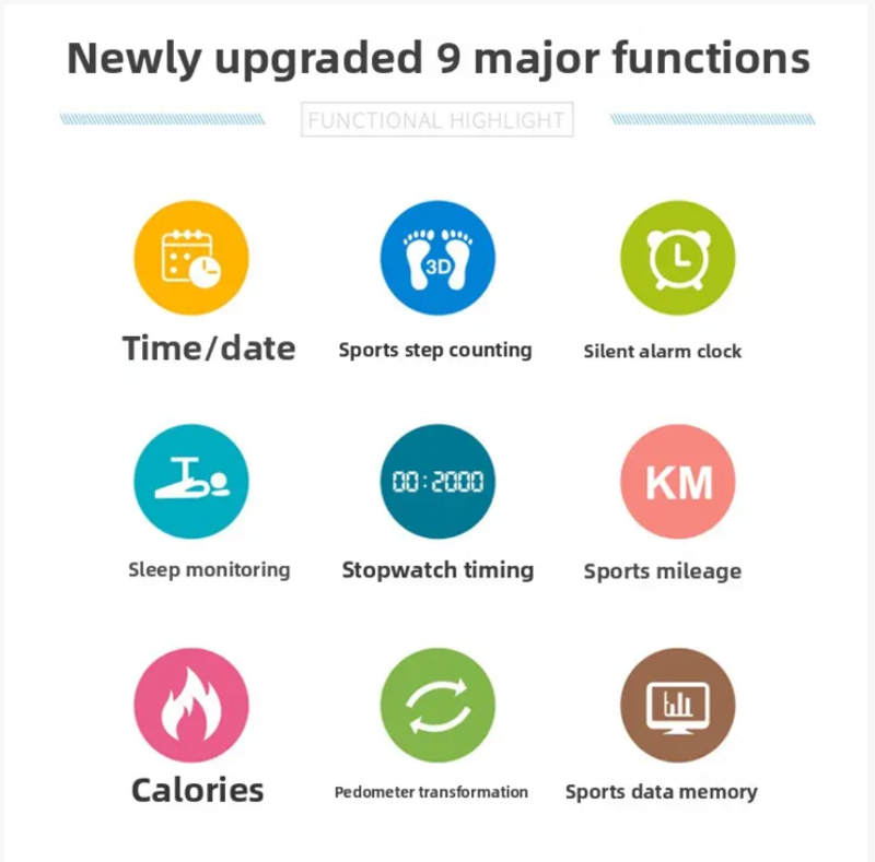 Você ainda está confuso sobre não conseguir contar com precisão os passos e calorias durante o exercício? Você ainda está tendo dificuldades com a dureza das pulseiras inteligentes que tornam o uso desconfortável? A Pulseira de silicone 3D Smart Full Soft está aqui! É um "companheiro atencioso" tanto para exercícios quanto para o dia a dia. Feito de silicone totalmente macio, ele é completamente imperceptível quando usado, com 9 funções inteligentes que registram com precisão os dados de saúde dos exercícios, permitindo que você acompanhe sua condição física a qualquer momento.
