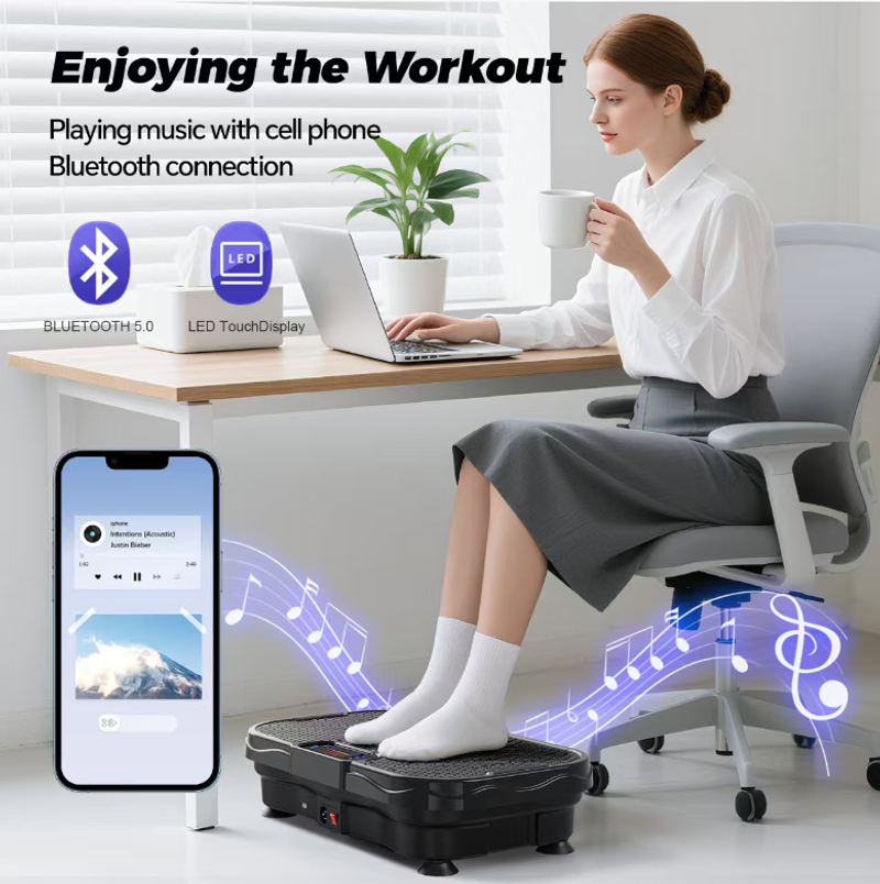 A experiência é simplesmente de primeira: o Bluetooth 5.0 se conecta ao seu celular e, durante o exercício, pode tocar sua música favorita sincronizadamente, ouvindo música enquanto "treme", o tédio desaparece completamente; Dupla operação com tela sensível ao toque LED + controle remoto, você pode ajustar as configurações com um clique no sofá; O design super silencioso é um bônus extra – ao correr, o barulho é tão baixo que não incomoda sua família, até os pets podem ficar quietos ao seu lado, e não tem medo de incomodar os vizinhos à noite.