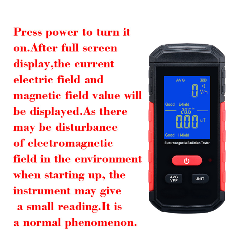 Electromagnetic radiation (mobile phones, computers, routers, microwave ovens, etc.): Detection range 0.01 - 1999 μT, resolution 0.01 μT, capable of accurately capturing radiation fluctuations during the operation of electronic devices, such as the radiation peak during phone calls and the radiation distribution around the router;