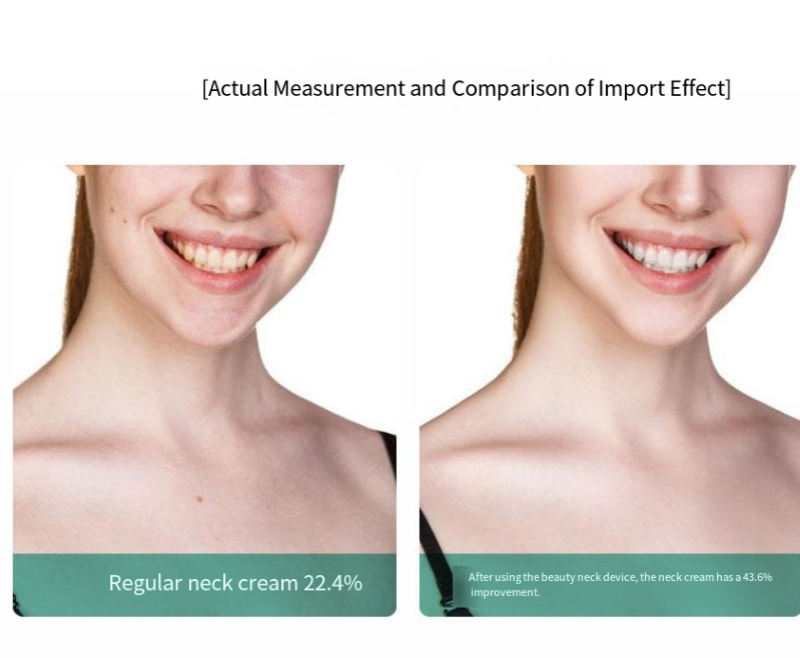 Equipado com "tecnologia de pulso de microcorrente", simula as técnicas de um massagista profissional, estimulando profundamente os músculos do pescoço. A partir do momento em que você ligá-lo, você sentirá uma sensação suave de levantamento, como inúmeras mãos "apoiando" a pele do pescoço. Após uma semana de uso consistente, as bordas das rugas do pescoço anteriormente flácidas serão visivelmente apertadas, eliminando o acúmulo de rugas quando você olhar para baixo. Após duas semanas, seu pescoço estará claramente definido e levantado, realçando seus contornos ao usar camisas e colares decotados. Chega de inclinar timidamente a cabeça para esconder as rugas do pescoço nas fotos! 2. Redução de rugas de longa duração: Reduz as linhas do pescoço em sua origem para resultados mais suaves e suaves com o uso.