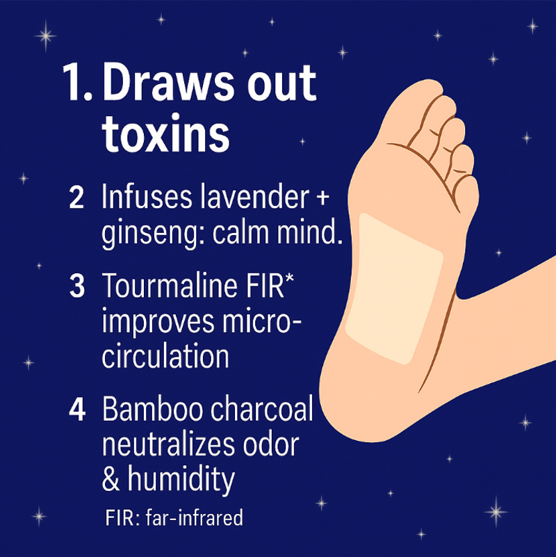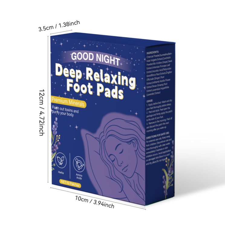 Feeling swollen in the feet after standing all day? Feeling sleepy and exhausted after 8 hours of sleep? Struggling with insomnia due to stress? This Deep Relaxing foot care detox patch combines detoxification, sleep aid, and relaxation in one patch. Apply it to your feet before bed and wake up feeling refreshed with light legs and feet, plus a deep sleep-induced relaxation.