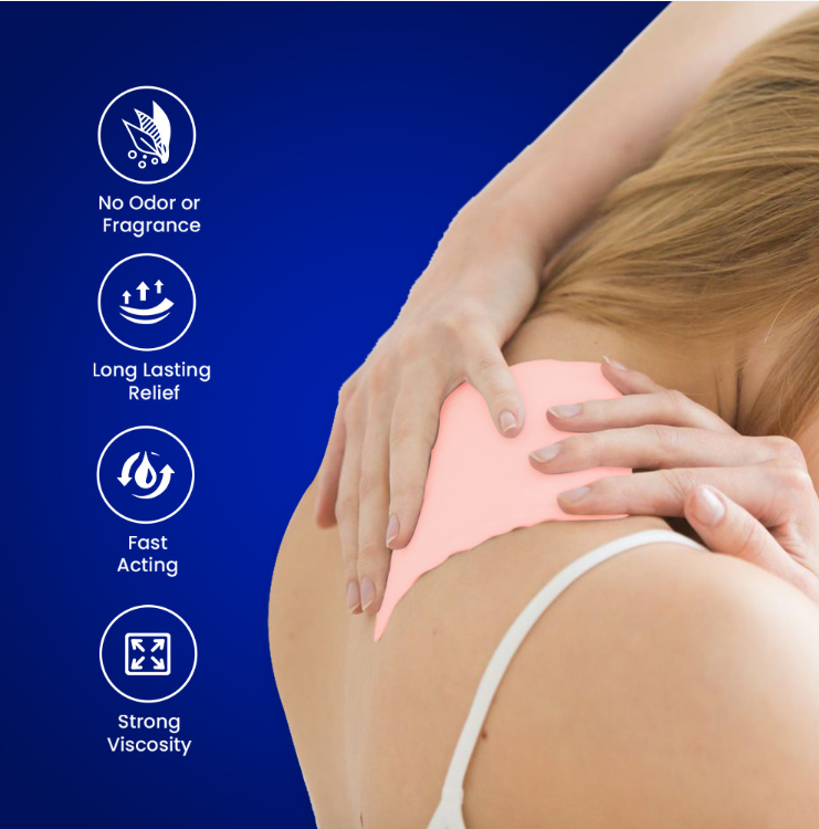 Ele contém lidocaína de grau médico com 4%, que pode anestesiar rapidamente os nervos da dor. Aplique em áreas doloridas, como cintura, pescoço, ombros ou joelhos machucados por esportes ou entorses. Você começará a sentir a dor diminuindo após cerca de 15 minutos. O gel é leve e não oleoso, e não causa suor excessivo quando aplicado na pele. Também é revigorante para usar no verão.