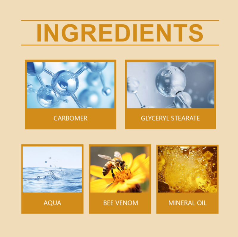 Seu ingrediente principal é extrato de veneno de abelha + acetil hexapeptídeo-8: O veneno de abelha imita o sinal de "microestimulação", estimulando a produção de colágeno na pele; O hexapeptídeo atua como um "dispositivo de ferro à base da pele", alisando suavemente linhas finas no rosto. Sem a forte estimulação dos tratamentos médicos, simplesmente aplicá-lo diariamente pode reduzir gradualmente linhas secas e pregas nasolabiais ao redor dos olhos, e a textura da pele ao usar um rosto simples também se torna mais delicada.