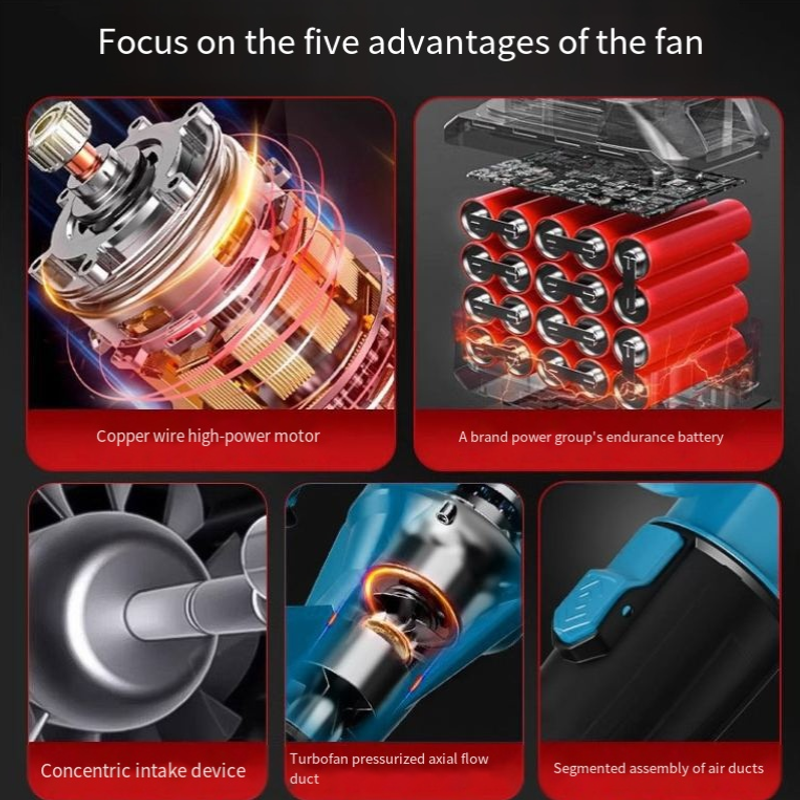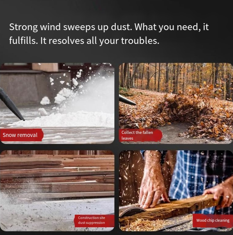 Equipado com um duto de ar de fluxo axial turboalimentado e um motor de cobre de alta velocidade de 10 convoluções, a energia eólica é tão forte que pode rivalizar com a força de um tufão de 14º nível. Ele pode varrer instantaneamente detritos, como folhas caídas, poeira e lascas de madeira. Ao limpar as folhas caídas no quintal, o trabalho que costumava levar meia hora agora pode ser concluído em apenas alguns minutos. Ao tirar o pó no canteiro de obras, mesmo o pó de cimento teimoso pode ser "varrido completamente". No inverno, soprar neve é ainda mais fácil - camadas espessas de neve podem ser "sopradas" em formas dispersas e derretidas.