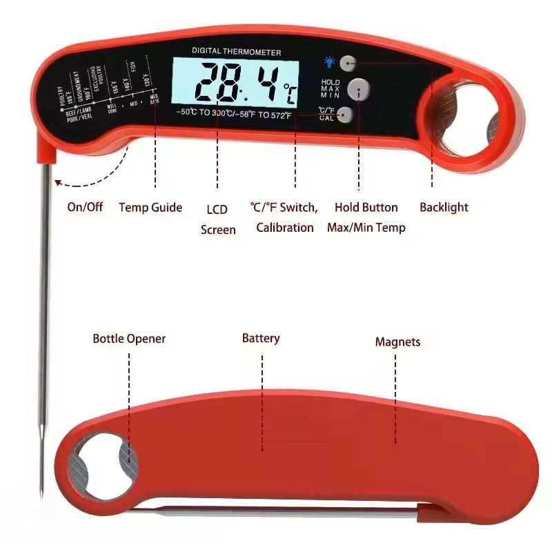 É até um "gestor atencioso" da vida: você pode não esperar que a parte de trás deste termômetro contenha um abridor de garrafas. Ao fazer um jantar com amigos, você não precisa correr atrás de ferramentas; O ímã dentro do corpo pode ser facilmente fixado na porta da geladeira quando usado, e você pode alcançá-lo olhando para cima durante o cozimento da próxima vez. A tela LCD retroiluminada pode mostrar claramente a temperatura mesmo no fim da noite, ao aquecer leite ou nas barracas de churrasco pouco iluminadas. A função de calibração garante que os dados nunca "desviem".