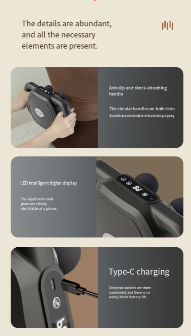【Design exclusivo】 Uma pistola fascial de 30 cabeças que realmente oferece massagem completa.