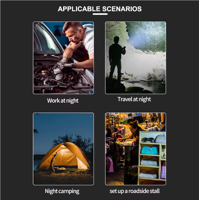 Desde a manutenção mecânica na oficina de reparação de automóveis, até reparos de encanamento no canto doméstico e o ajuste de luz e escuridão em acampamentos ao ar livre, esta lâmpada de trabalho usa tecnologia para romper as limitações da iluminação. Não é apenas uma lâmpada; É também o seu "companheiro inteligente" para aumentar a eficiência do trabalho e garantir a segurança operacional. Ele permite que todos os reparos e criações sejam concluídos em um ambiente claro e conveniente.