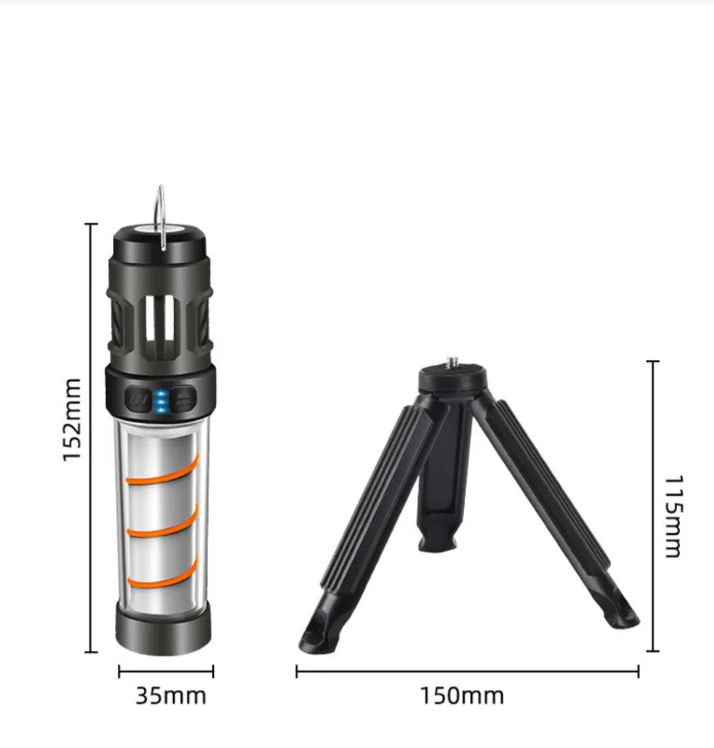 Cenários de acampamento: Pode ser pendurado no topo da barraca como uma lâmpada de atmosfera, colocado na mesa do acampamento como uma barreira repelente de mosquitos, segurado na mão como uma lanterna para pathfinding;
