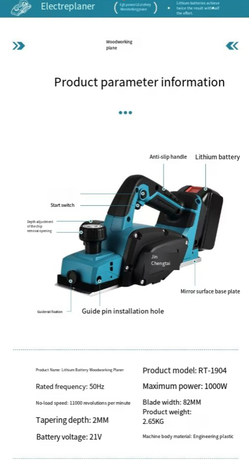 Essa plaina recarregável de madeira de bateria de lítio é uma escolha ideal para entusiastas e profissionais da marcenaria. Ele integra múltiplas funções e pode lidar com diversas tarefas com facilidade, seja ajuste de profundidade, corte eficiente ou lidar com cenários complexos. Diga adeus à complexidade das plainas tradicionais para marcenaria e abrace a conveniência e eficiência da era da marcenaria movida a lítio.