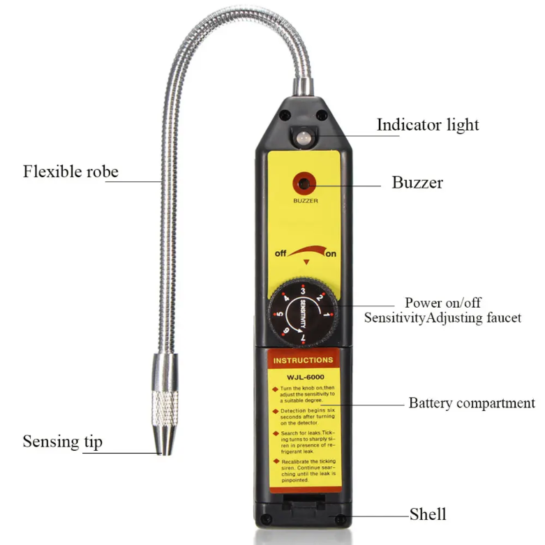 The operation and alarm design are very user-friendly: starting the device will automatically calibrate without the need for complex settings; when a refrigerant leak is detected, it will simultaneously trigger a dual alarm of sound and light - the pointer deflection indicates the leakage concentration, and the buzzer and warning light provide intuitive reminders, even in a noisy maintenance environment, you can immediately sense the leakage risk.