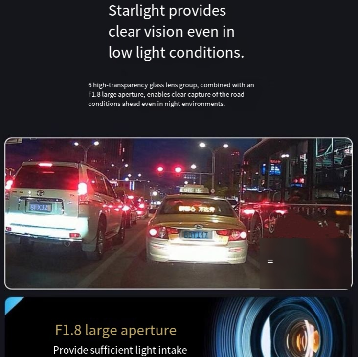 É o "olho de alta definição" para registros de direção. Equipado com seis conjuntos de lentes de vidro de alta definição, a resolução Ultra HD 1080P torna os detalhes da imagem cristalinos. Seja o reconhecimento diurno da placa ou a captura noturna das condições da estrada, é claro e preciso. Incidentes inesperados, como corte de faixa, colisões traseiras ou momentos cênicos ao longo do caminho, podem ser capturados por ele "em uma tomada contínua", preservando as memórias de direção mais autênticas para você.